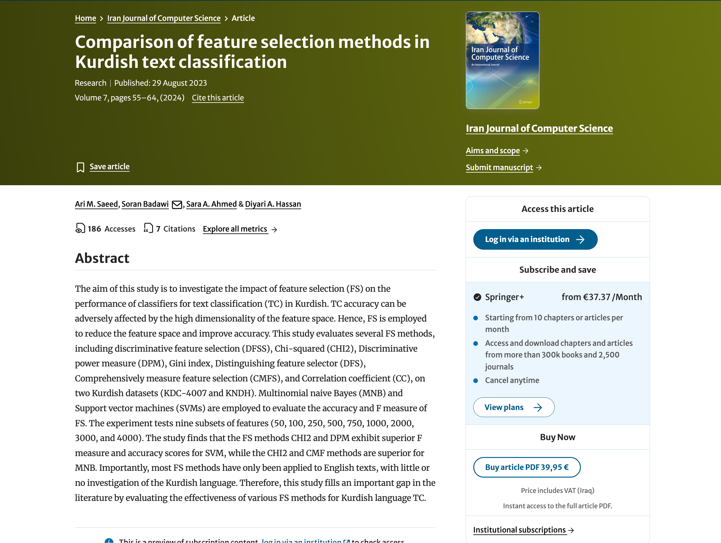 Comparison of feature selection methods in Kurdish text classification